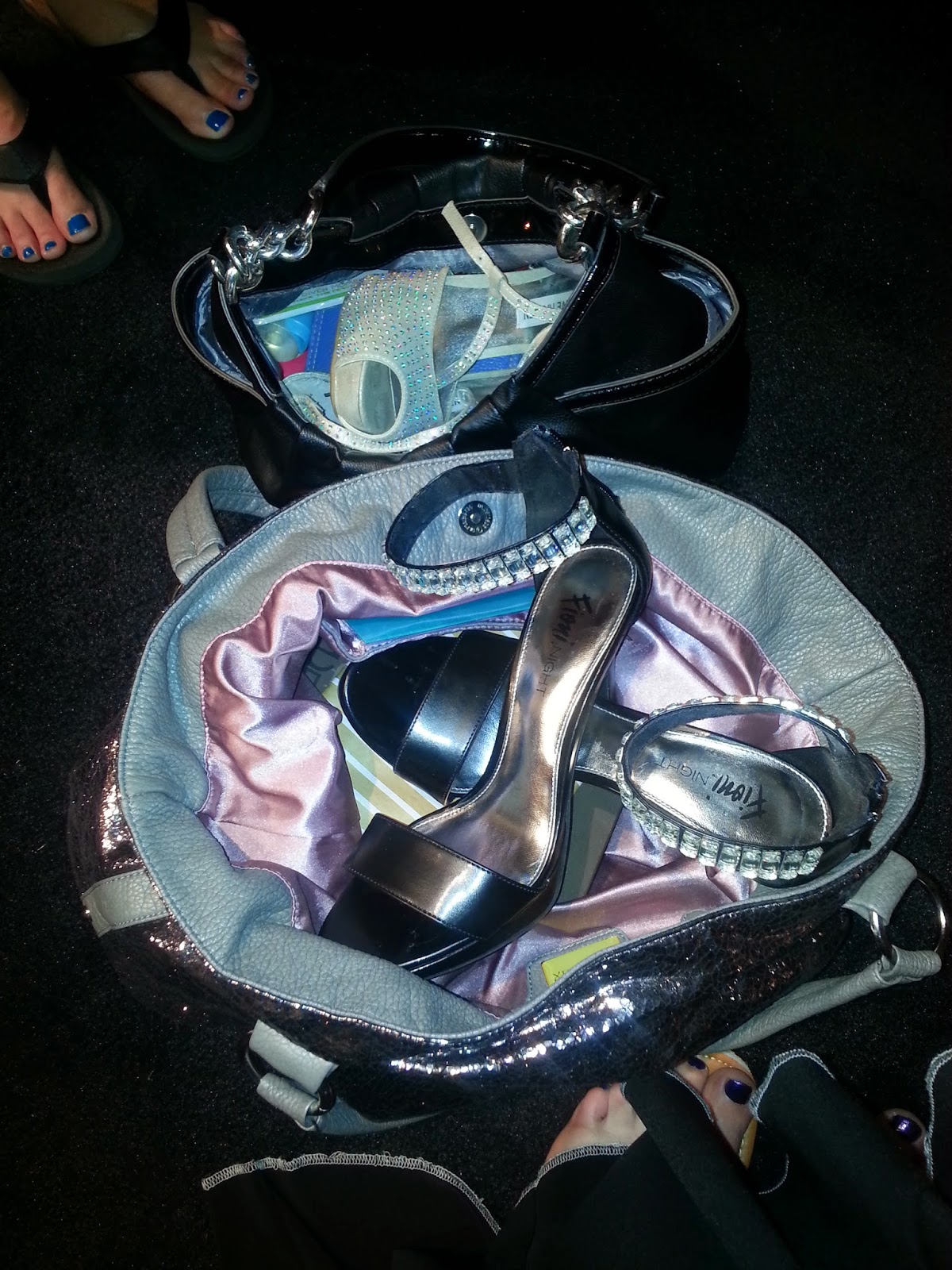 This picture says it all, as you find Sara and my shoes, with bling of course, finding their way into our purses after an evening of excitement, fun and memories (that I can't wait to memory keep with Project Life with Stampin' Up!).