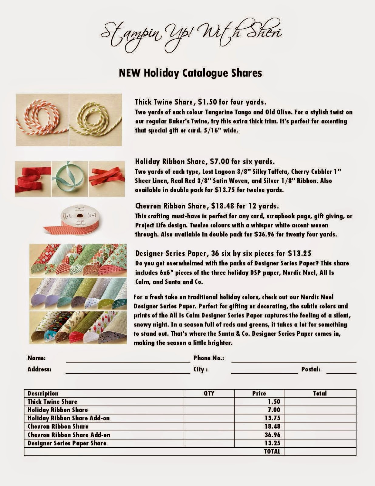 Product Shares! Chevron ribbon, holiday Designer Series Paper and Cotton ribbon shares, ready for pick up! If you haven't ordered yours yet, no problem I have extras! My other great shares are also still available, check out the Shares tab. Just send me an email to order today.