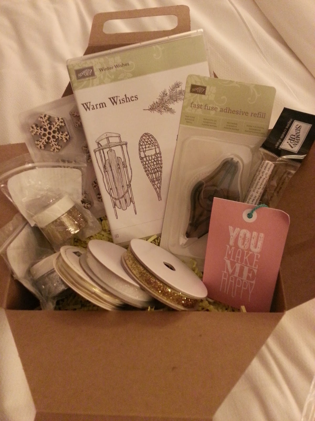 A gift that's tag says it all "You make me happy"! A box full of Stampin' Up! product always brings me a smile and warm fuzzy feeling, and I was so excited that this stamp set was included as I wanted it personally but hadn't bought it yet!