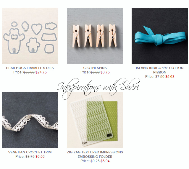 Hi everyone! Typically I post every Tuesday with the weekly deals and any other announcements that we have received from Stampin' Up! each in separate blog posts. I thought I would change this up a little and make it into one weekly update post so that I can start introducing more regular posts about my cards & designs! So instead of just getting a bunch of posts on one day of the week, please watch for more exciting posts throughout the week! Yay! I will share with you that I am still working on my photography skills to take a great picture, but with each picture I get a bit better at capturing the essence of each card (well at least in my mind I am).