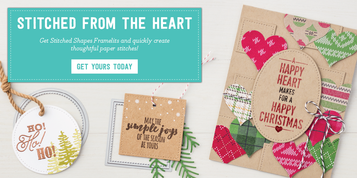 Now Stampin' Up! is offering us a great opportunity to purchase Stitched Shapes Framelits ahead of their official release in the 2017-2018 annual catalog!!!! And to save 25% off coordinating stamp sets until November 30th!! With Stitched Shapes Framelits you can make paper stitches in seconds, turning any project into one that is stitched from the heart.